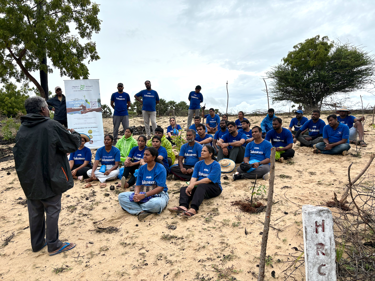 The State Street Environmental Committee donated 500 saplings for the conservation carried out by Arulagam. The volunteers participated in sand dune-associated plantation activities at Malligai Nagar, on land managed by the Hindu Religious and Charitable Endowments (HR&CE) Board. They successfully planted 500 saplings, including creepers, bushes, and medium-sized trees, and applied mulching to aid growth.